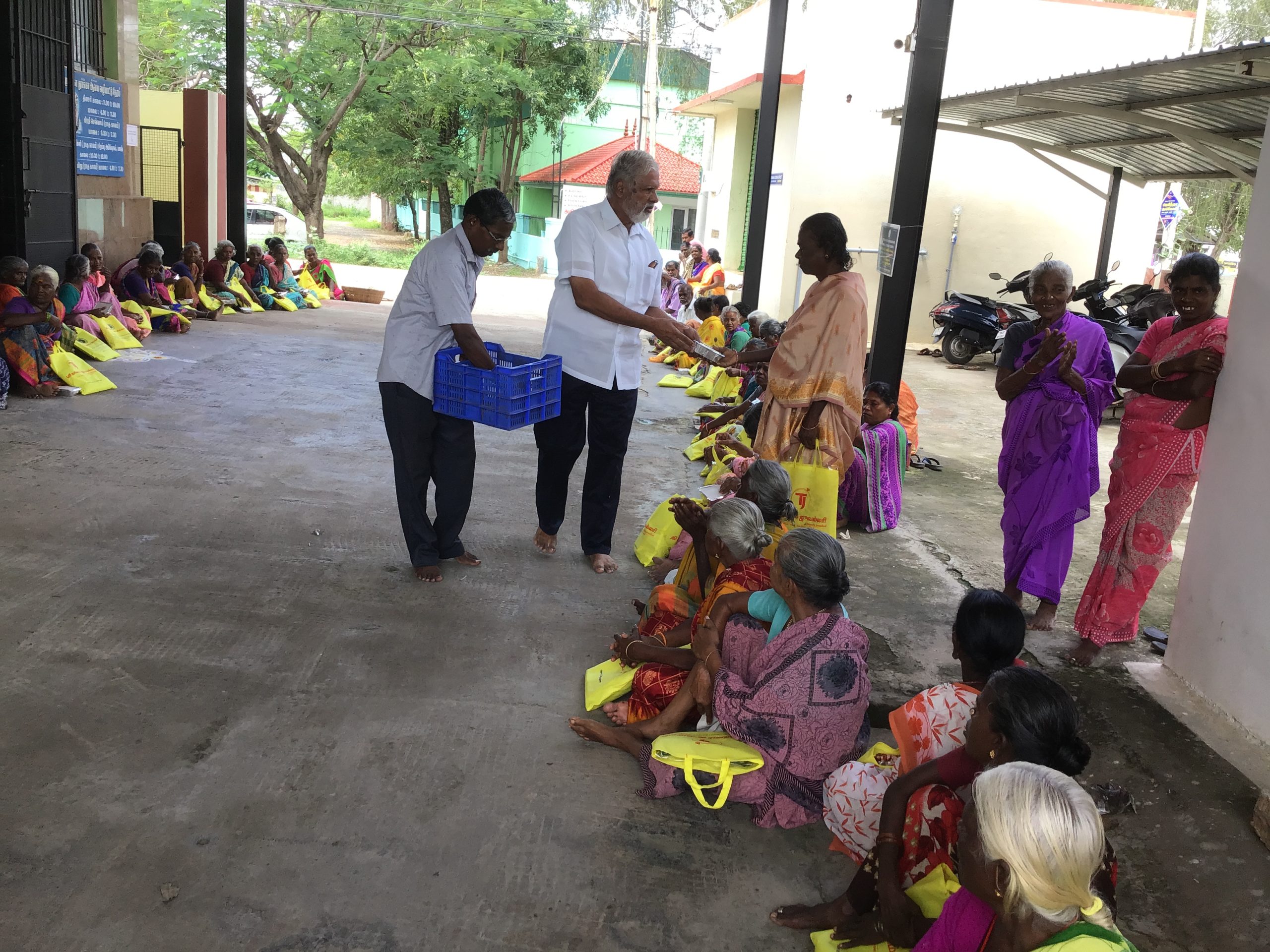 The scheme was started in 1995 by the Founder of the Trust.At initial stage, we started by serving food to homeless people living on the streets and under bridges every day. We continued the scheme with great difficulties with a motto as serving the poor is service to God. The Founder constructed a new building and leased it to the Trust for Annathanam and dedicated to the Public by Swami Ramakrishnanandapuri on 10.05.2019. Now the scheme as “ANNAPOORANI SCHEME” is distributing food for 100 people per day at 12 noon. Few moments of inaugural function & Annathanam is below.